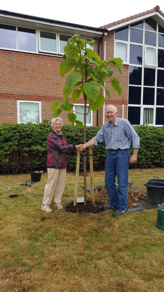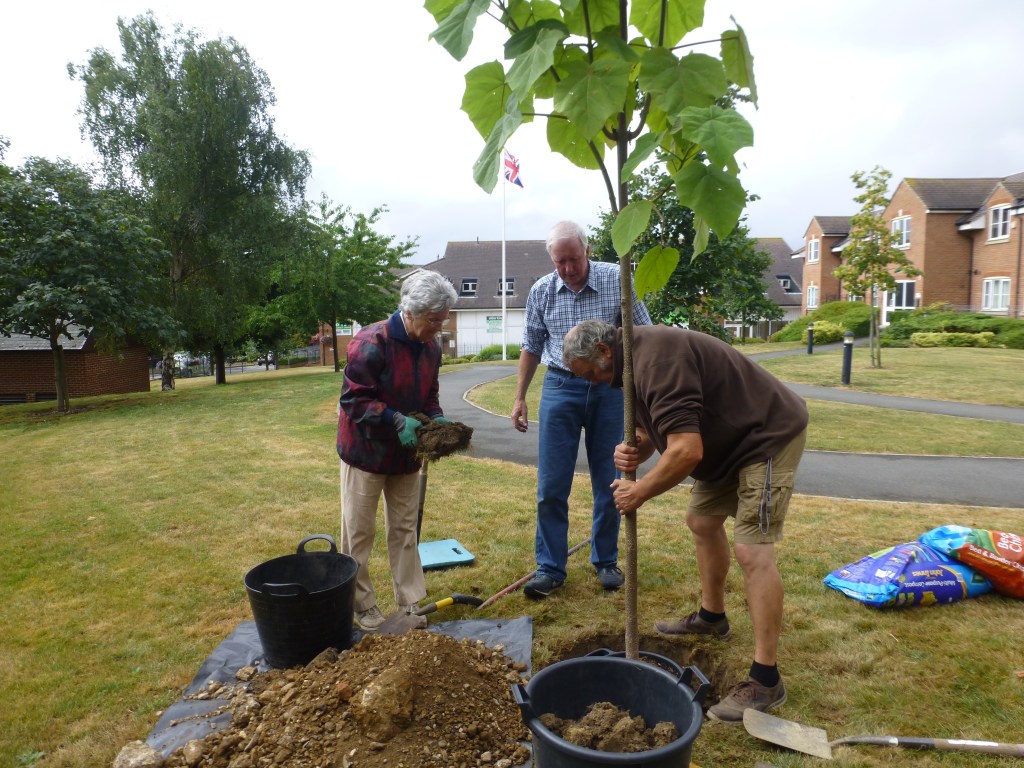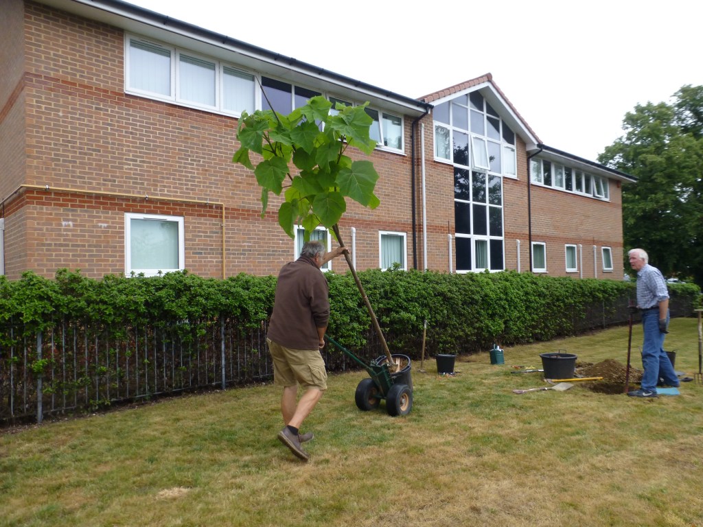 More recently in July 2017 the society planted a Paulownia tomentosa (also known as the Foxglove Tree, the emperor or empress tree and the princess tree) on Bells Hill Green, Stoke Poges, in memory of Jim Ireland CBE, a former President Emeritus. The tree is showing some good growth and we hope it will provide much pleasure to all in due course , when it flowers in early spring.